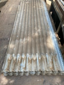 A lightweight construction material made of galvanised steel used commonly as a lightweight construction material made of galvanised steel used commonly as roofing for buildings.